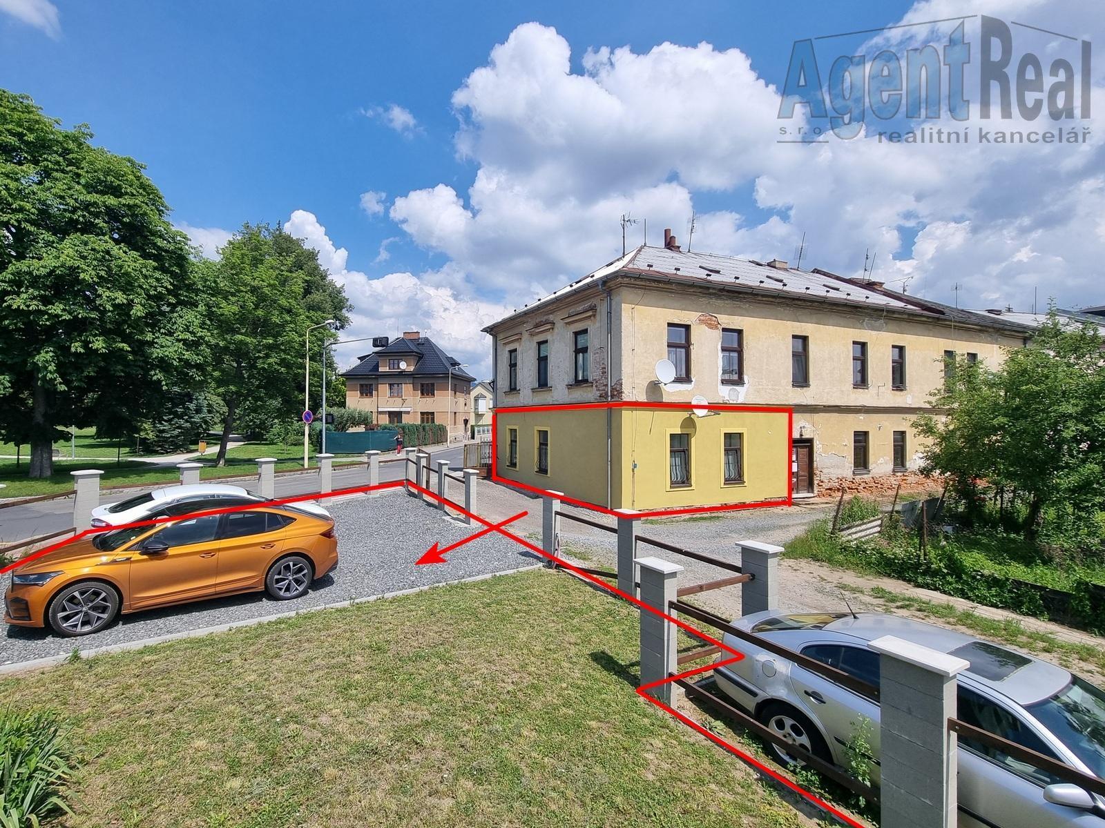 K bytu náleží vlastní pozemek 173 m2 pro parkování cca 3 aut, garáž (pozemek 24 m), částečně zastřešený pozemek o výměře 61 m2 a spoluvlastnický podíl na pozemku okolo domu. V budově nejsou vymezeny bytové jednotky, nelze tedy použít jako zástavu pro hypoteční úvěr.