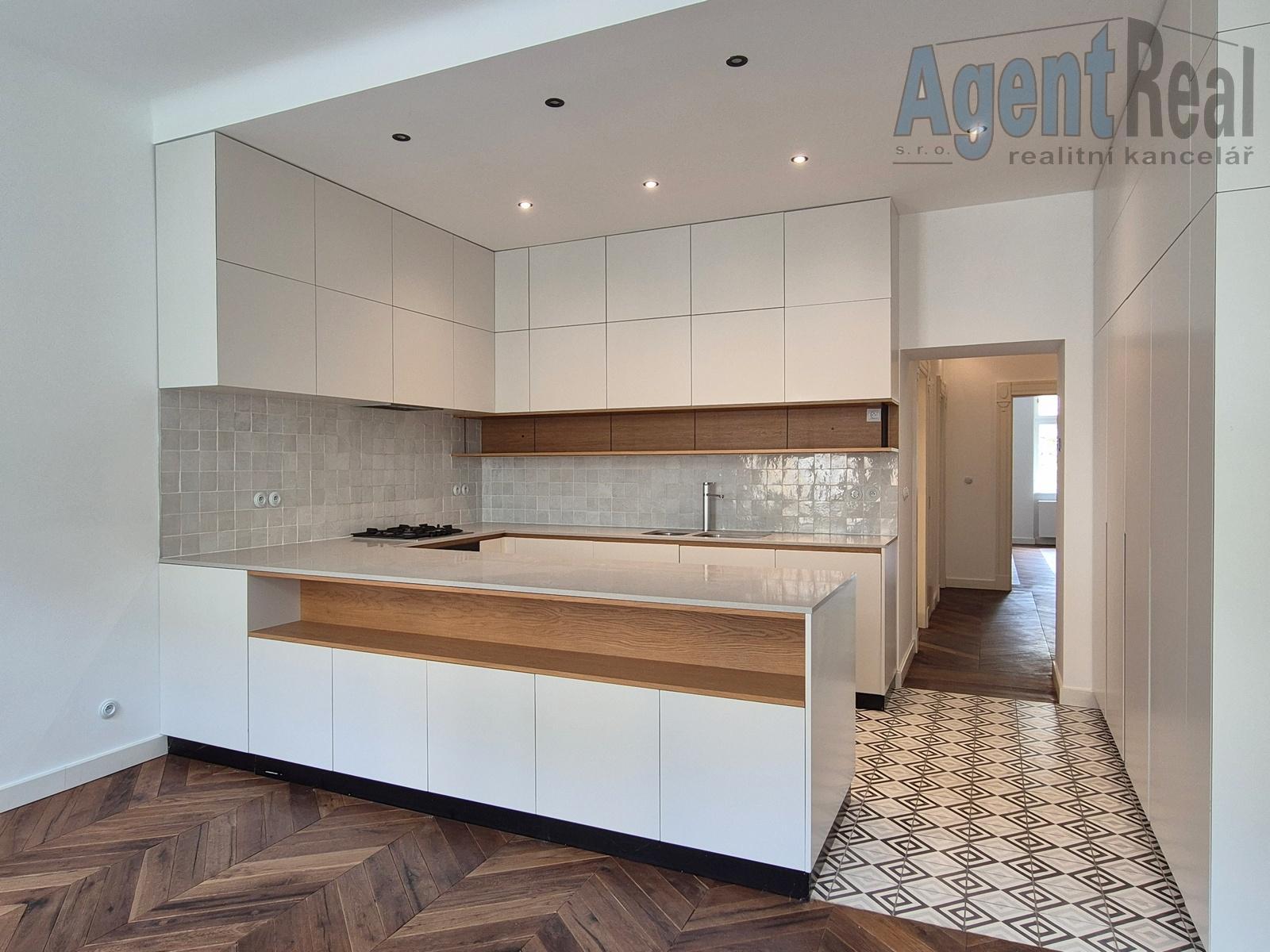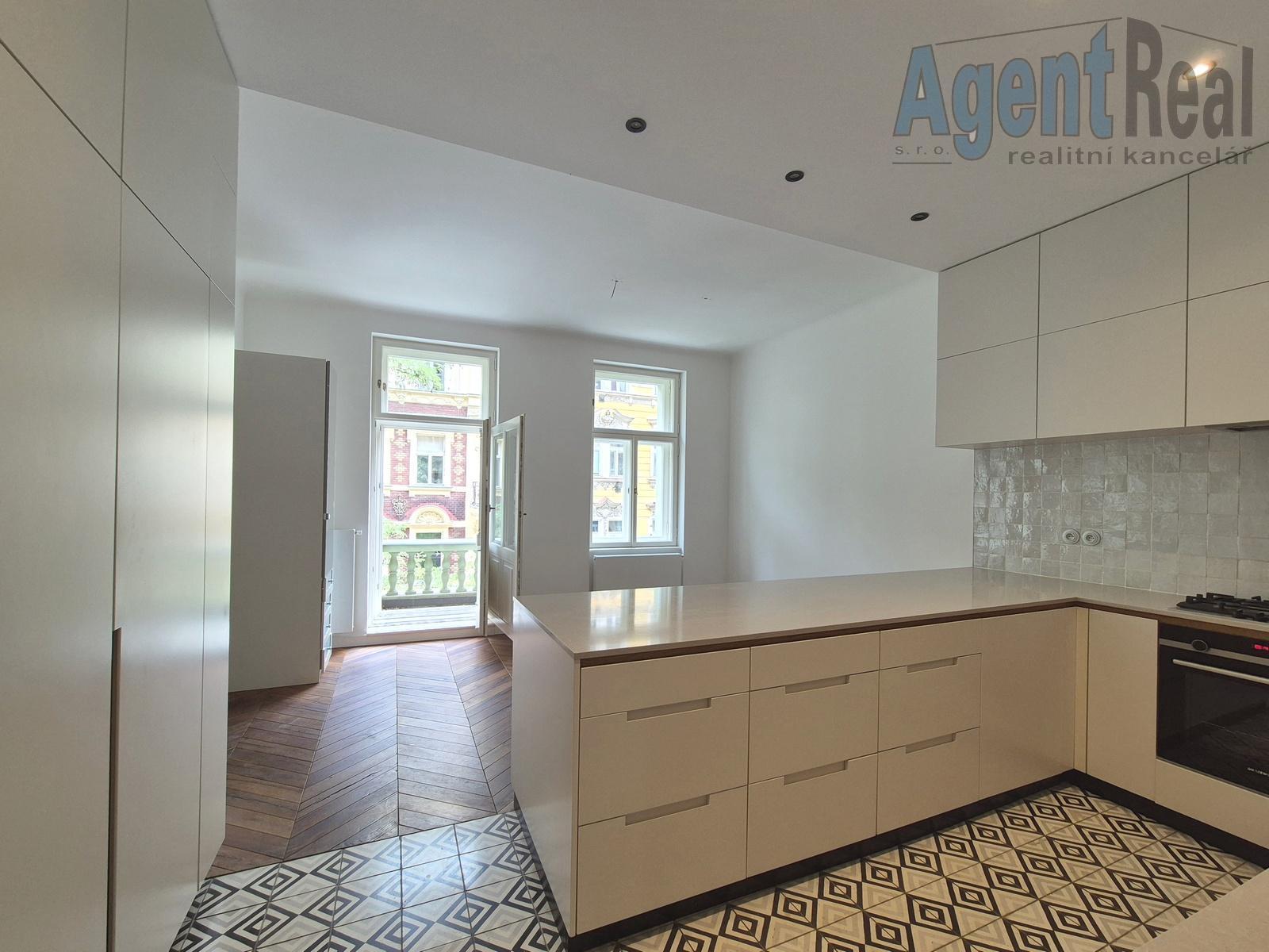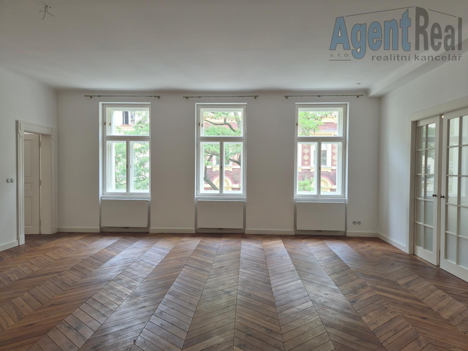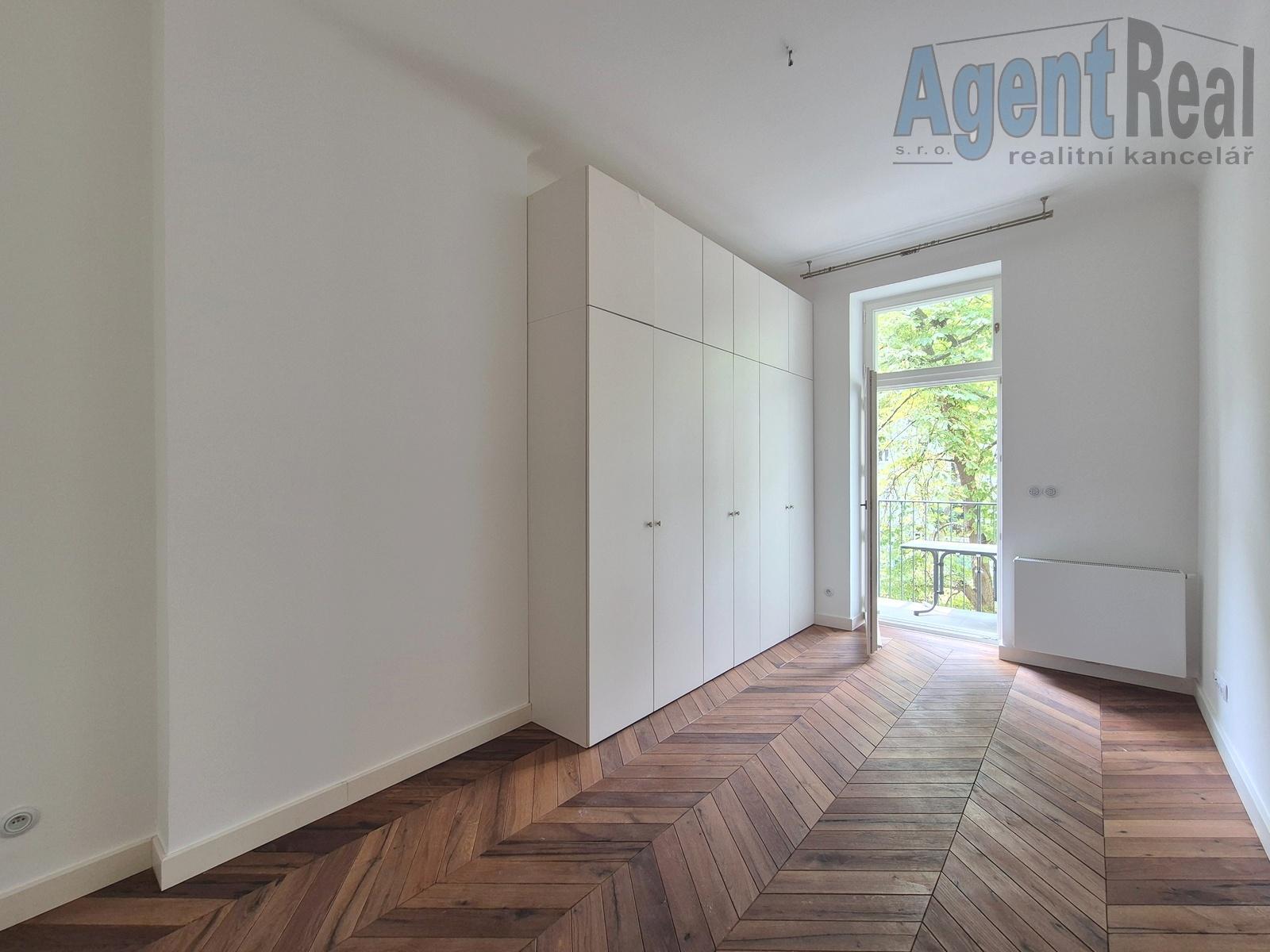 Stylově renovovaný byt se nachází ve 2. patře zrekonstruované neoklasicistní budovy s výtahem. Sestává se z předsíně, velkého obývacího pokoje propojeného posuvnými dveřmi s kuchyní s moderní kuchyňskou linkou, ložnice s šatnou a s vlastní koupelnou se sprchovým koutem, dále dvou pokojů, hlavní koupelny s vanou a WC, samostatného WC a komory. Příslušenství tvoří dva balkony do ulice (2x 2.25 m2) a lodžie do vnitrobloku (3.78 m2). Atmosféru interiéru podtrhují renovované dřevěné parketové podlahy, masivní interiérové dveře, stylové vypínače, vysoké stropy atd. Vytápění je ústřední s plynovým kotlem, který zajišťuje i ohřev TUV. Vestavěné skříně poskytují dostatek úložného prostoru. Jedná se o nadstandardní bydlení v klidnější boční ulici, se skvělou dostupností do centra (cca 200 m od stanice metra). Cena je včetně provize a právních služeb. Před osobní návštěvou si, prosím, prohlédněte podrobnou 3D virtuální prohlídku na domovské stránce AgentReal, kde si celou nemovitost prohlédnete mnohem lépe než z běžných fotografií či videa.